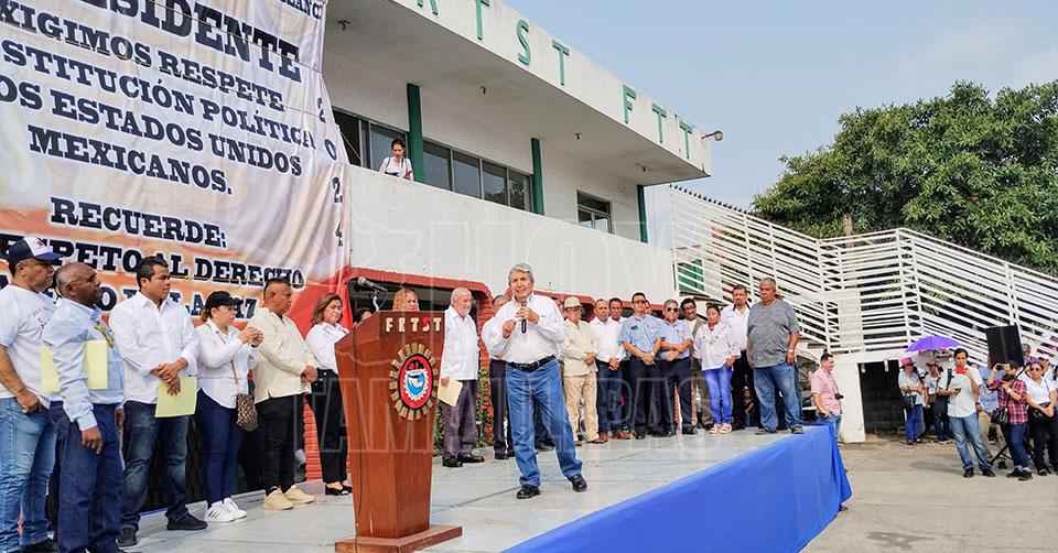 El acto estuvo encabezado por el secretario general de la Federación de Trabajadores del Sur de Tamaulipas, Edmundo García Román y el alcalde Fernando Alzaga Madaria, además de los dirigentes de los distintos sindicatos que conforman la central obrera, aglomerando unos tres mil obreros.