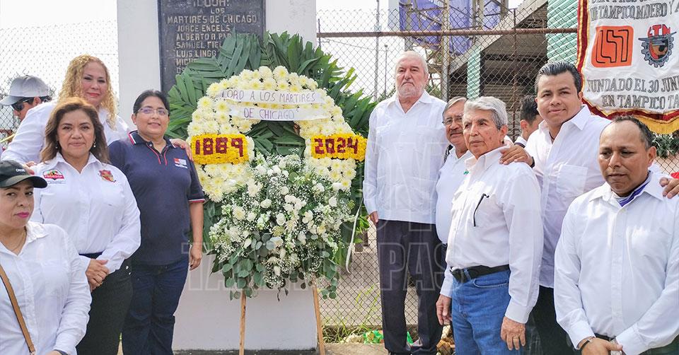 Al término de los discursos que se pronunciaron durante este acto, pues no hubo desfile obrero por parte de la CTM, los dirigentes de los diferentes sindicatos, acompañados del alcalde de Tampico Fernando Alzaga Madaria, colocaron una ofrenda floral y montaron una guardia de honor ante el monumento que la FRTST tiene en este lugar a los líderes de los movimientos laborales de Cananea, Chicago y Río Blanco.