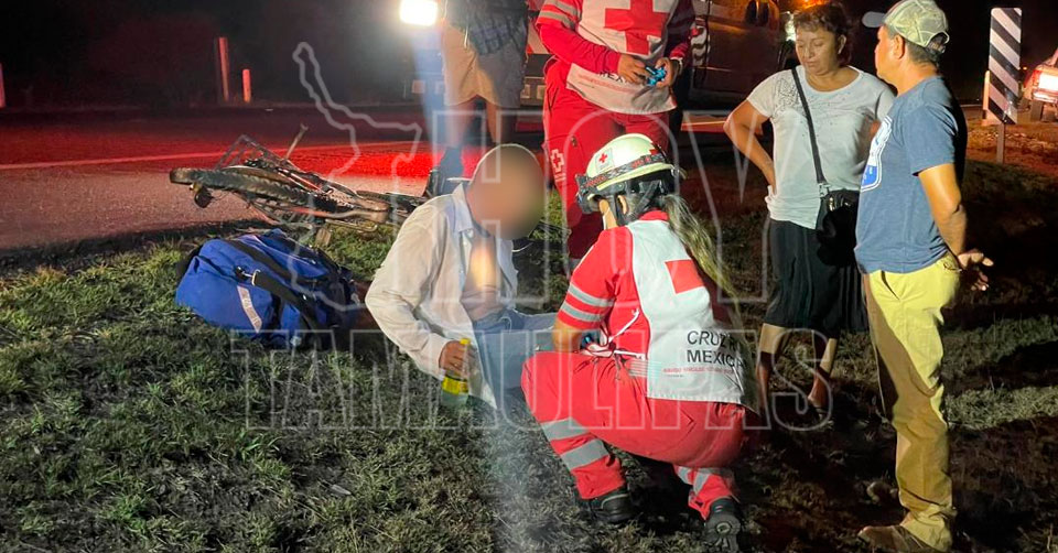 Ciudad Victoria, Tamaulipas. – Un hombre de edad adulta y de oficio intendente en una estación de servicio resultó lesionado al ser atropellado cuando viajaba en su bicicleta rumbo a su lugar de trabajo.