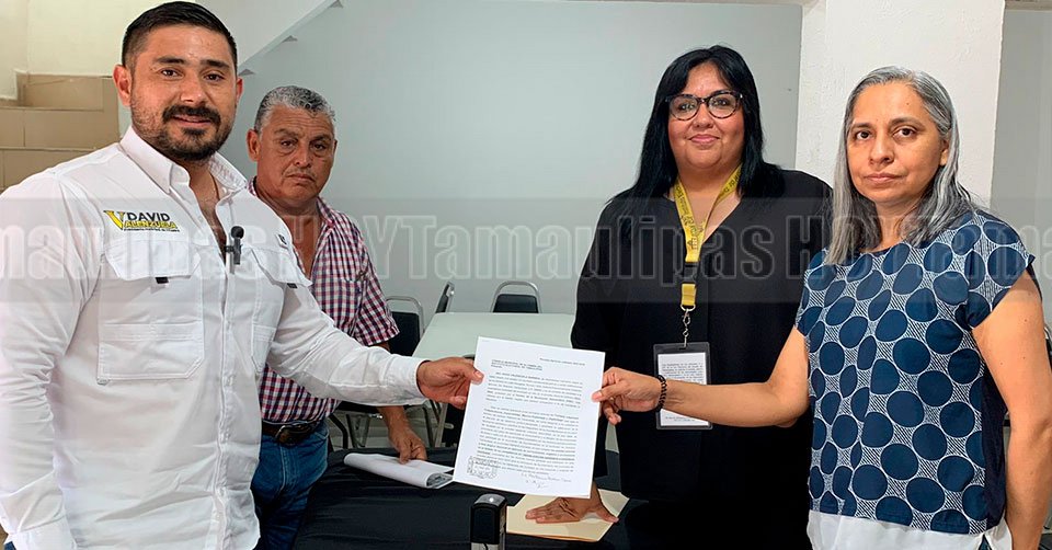Altamira, Tamaulipas. - El candidato del Partido de la Revolución Democrática a la presidencia municipal de Altamira, David Valenzuela Barrios, se presentó en las oficinas del IETAM municipal, para solicitar de manera oficial promueva un debate público entre los cuatro candidatos a la alcaldía de Altamira.