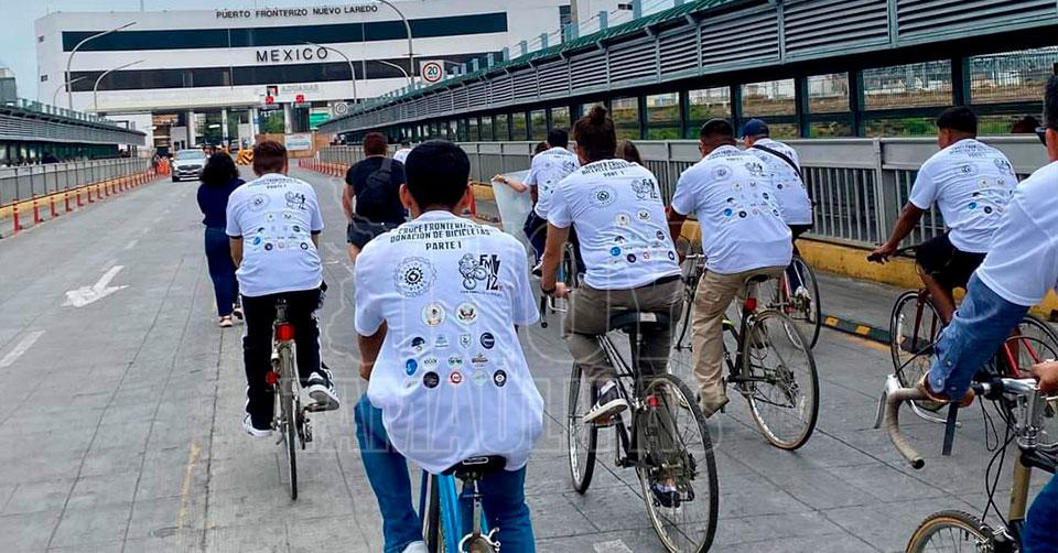 Las bicicletas fueron cruzadas de la Plaza San Agustín en Laredo, Texas a la Plaza Juárez en Nuevo Laredo por los mismos activistas.