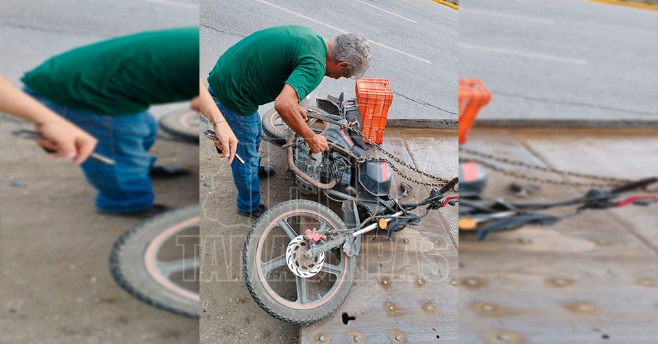 Altamira, Tamaulipas. – Un motociclista resultó lesionado esta tarde al chocar con un caballo sobre la Avenida de la Industria, poco antes de subir al puente que comunica al sector Arboledas.