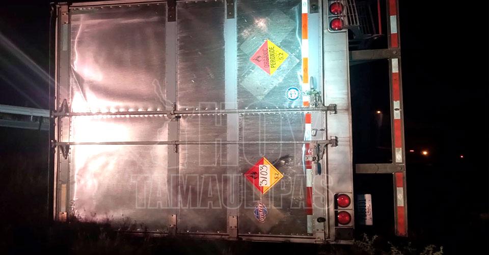 Trailero se vuelca tras impactar a una vaca en Nuevo Laredo