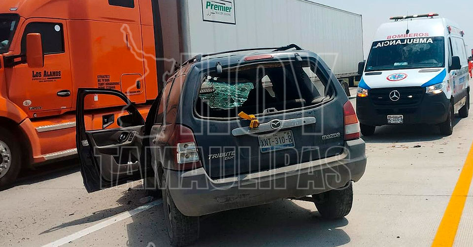 Nuevo Laredo, Tamaulipas. - Un hombre que conducía una camioneta Mazda Tribute resultó con lesiones leves tras chocar contra un tráiler en la autopista a Nuevo Laredo.