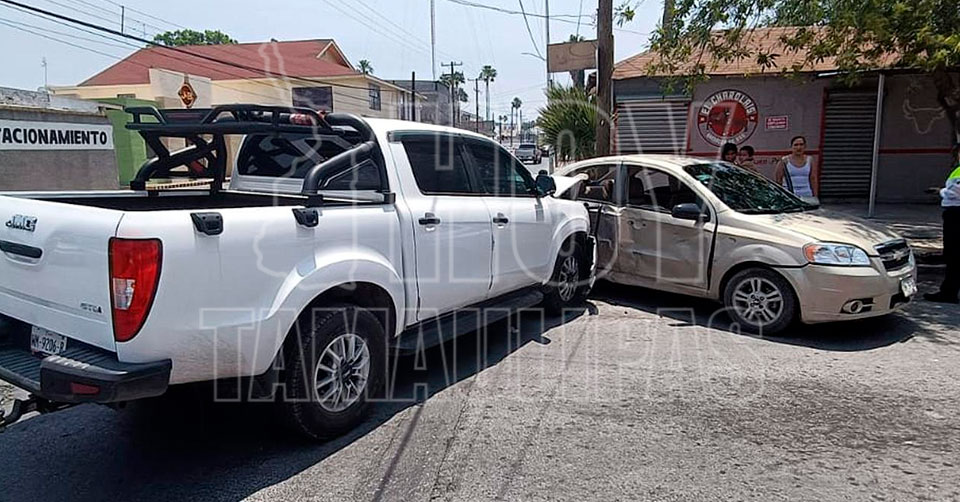 El percance se registró en el crucero de Iturbide y Morelos, y fue provocado por Dulce, de 30 años, quien conducía un Chevrolet Aveo modelo 2009, quien no respetó la señal de alto.