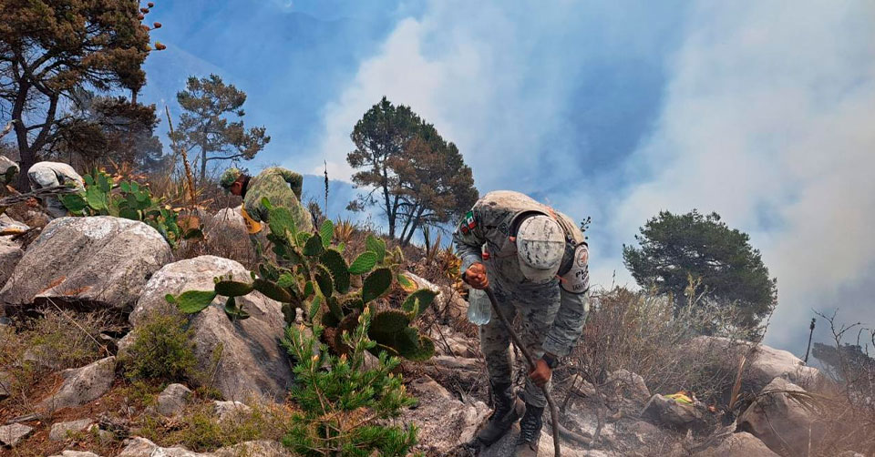 Hasta el punto se han trasladado 32 efectivos y cuatro vehículos del Ejército Mexicano, así como20 agentes y dos vehículos de la Guardia Nacional, además de los elementos de Protección Civil, Conafor y voluntarios.