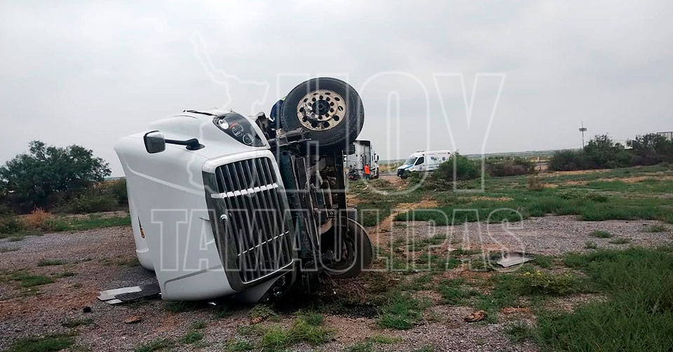 Choque con volcadura deja daños en carretera a Nuevo Laredo