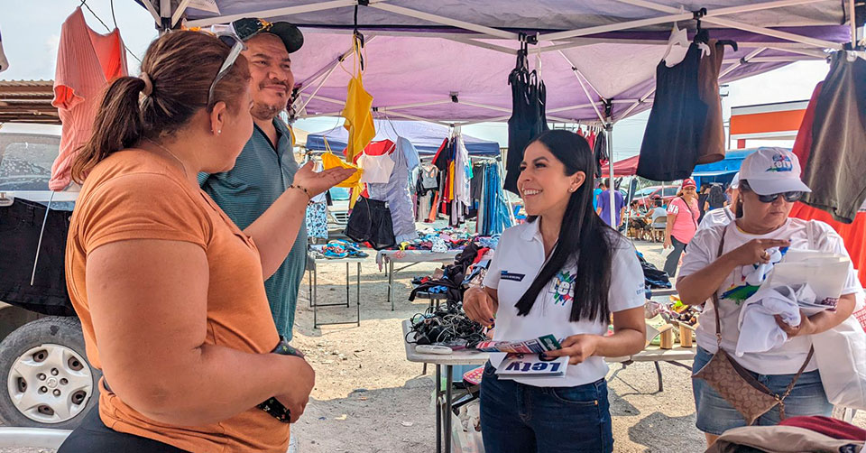 Matamoros, Tamaulipas. - La candidata de la alianza Fuerza y Corazón por Tamaulipas, Lety Salazar recorrió las instalaciones del tianguis de casa blanca, donde fue muy bien recibida por parte de los comerciantes y clientes que se encontraban en el lugar.