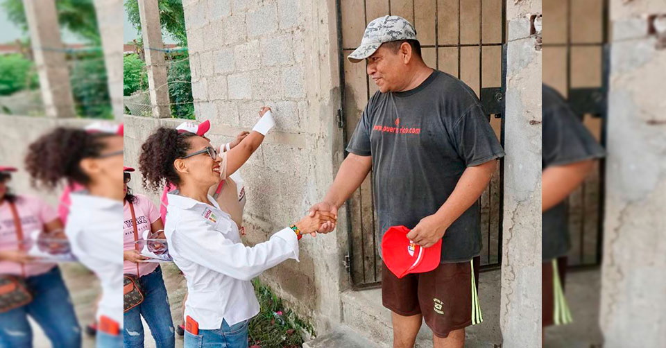 Altamira, Tamaulipas. - La candidata de la coalición "Sigamos Haciendo Historia en Tamaulipas" a la diputación local por el Distrito 19, Cynthia Jaime “La Comaye”, llevó a cabo un recorrido casa por casa en el sector Nuevo Madero en Altamira. Durante su visita, tuvo la oportunidad de escuchar las demandas y preocupaciones de la población local.
