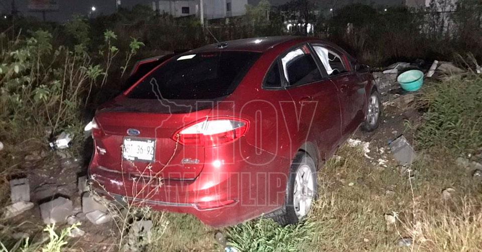 Ciudad Victoria, Tamaulipas. – Un conductor y dos acompañantes que presuntamente andaban de parranda, dejaron abandonado el automóvil en el que paseaban luego de estrellarlo contra un autobús de transporte de personal.