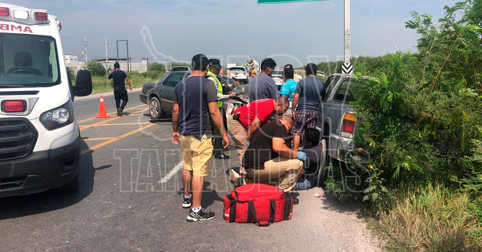 El percance se registró esta mañana en el Viaducto Reynosa, a la altura del Completo Estatal de Seguridad Publica, hasta donde arribó una ambulancia de Protección Civil municipal.