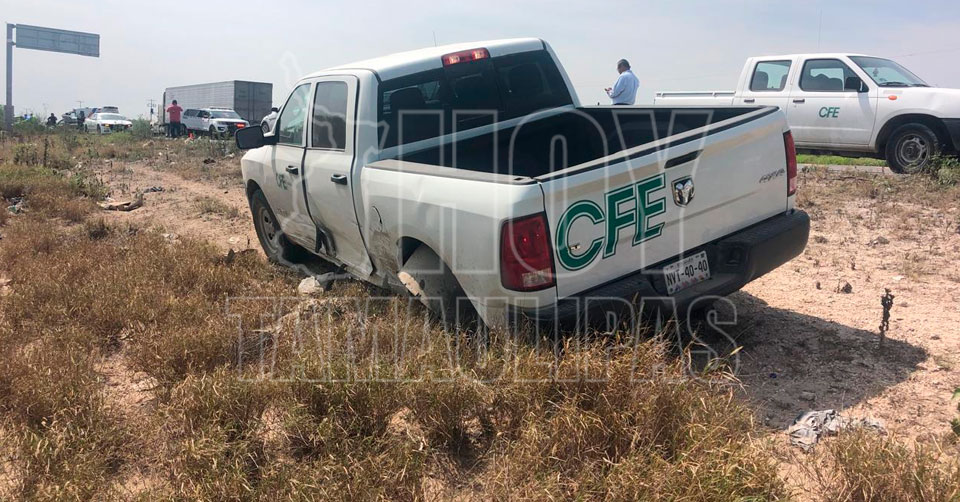 Reynosa, Tamaulipas. - Un conductor perdió el control al volante luego de que un neumático se pinchara, se estrelló contra una camioneta propiedad de la CFE y otra unidad particular, dejando un saldo de un masculino lesionado y cuantiosos daños materiales.
