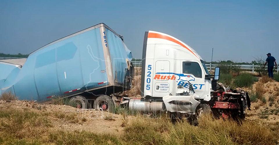 Según los primeros reportes, el operador conducía un tráiler de la empresa Rush Best con el número económico 5205, el cual se salió del camino y terminó sobre el camellón.