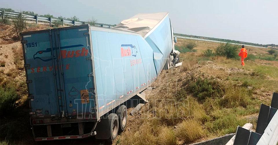 Nuevo Laredo, Tamaulipas.— Un operador de tráiler salvó su vida de manera milagrosa tras sufrir un aparatoso accidente en la autopista a Nuevo Laredo.