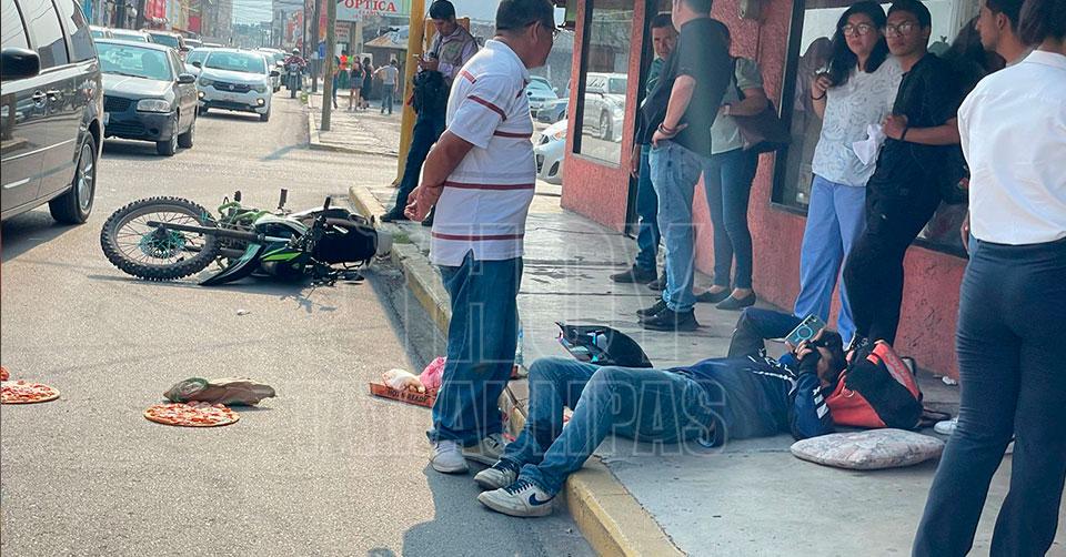 Posteriormente impactó a una motocicleta Italika que manejaba de norte a sur un repartidor de comida, el cual golpeó el parabrisas y luego cayó de lleno sobre el asfalto.