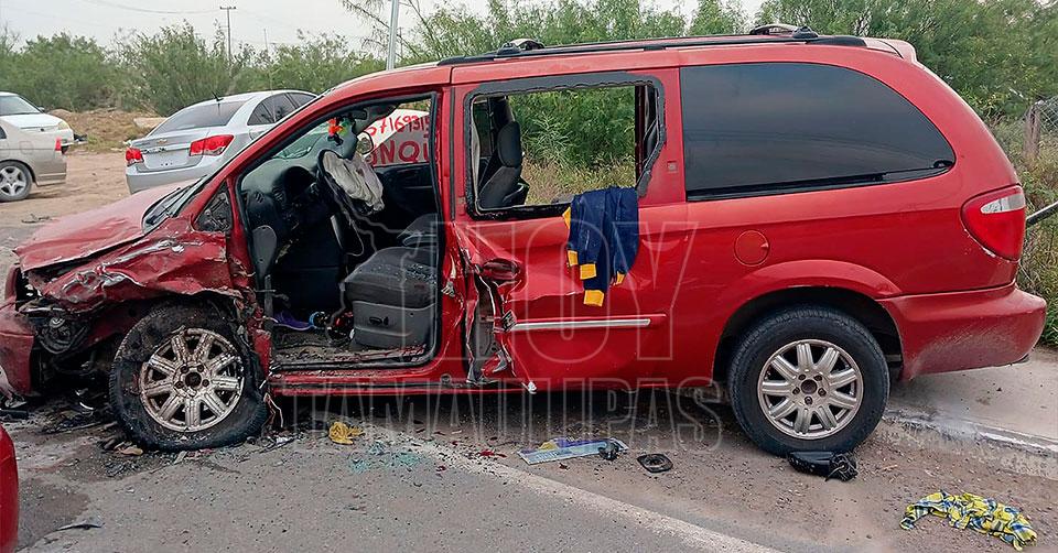 Nuevo Laredo, Tamaulipas. — Un aparatoso choque registrado en calles del Ejido El Progreso en Nuevo Laredo, dejó como saldo dos personas lesionadas y cuantiosos daños materiales.