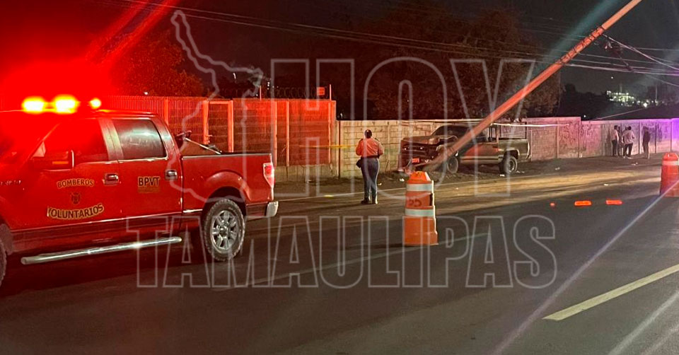 Altamira, Tamaulipas. - El conductor de una camioneta tipo pick-up que se desplazaba con evidente exceso de velocidad terminó estrellándose contra un poste de concreto de la Comisión Federal de Electricidad (CFE), el cual derribó, accidente en el que su esposa y tres hijos menores de edad resultaron lesionados, mientras que él fue detenido por las autoridades.