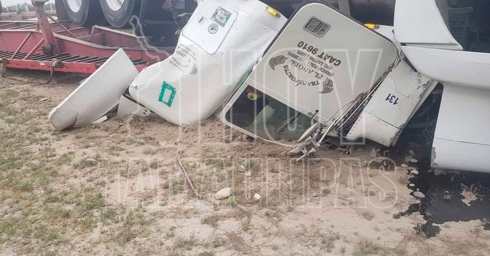 Operador de tráiler fallece en volcadura en carretera a Nuevo Laredo