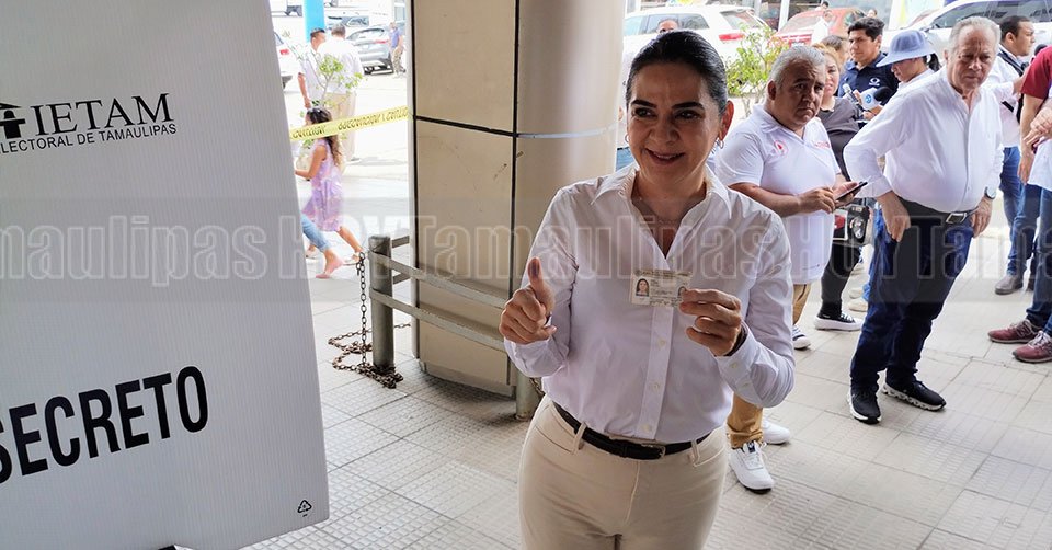 La abanderada de Morena-Verde-PT acudió a la casilla 1390, ubicada en el Fraccionamiento Petrolera Chairel, donde emitió su sufragio, y quien como se apunta se mostró confiada en obtener un resultado favorable.