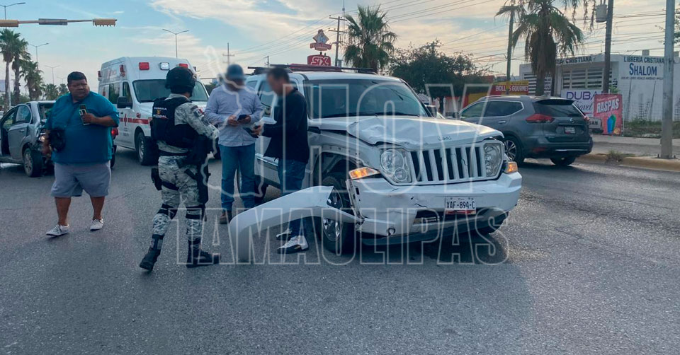 Ciudad Victoria, Tamaulipas. - Dos personas lesionadas y cuantiosos daños materiales fue el saldo que dejó un choque por alcance con proyección esta mañana, tras impactarse una camioneta Suv contra una unidad Sedan, esta última terminó proyectada contra una palmera.