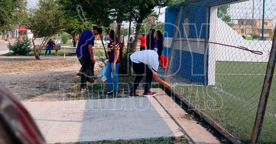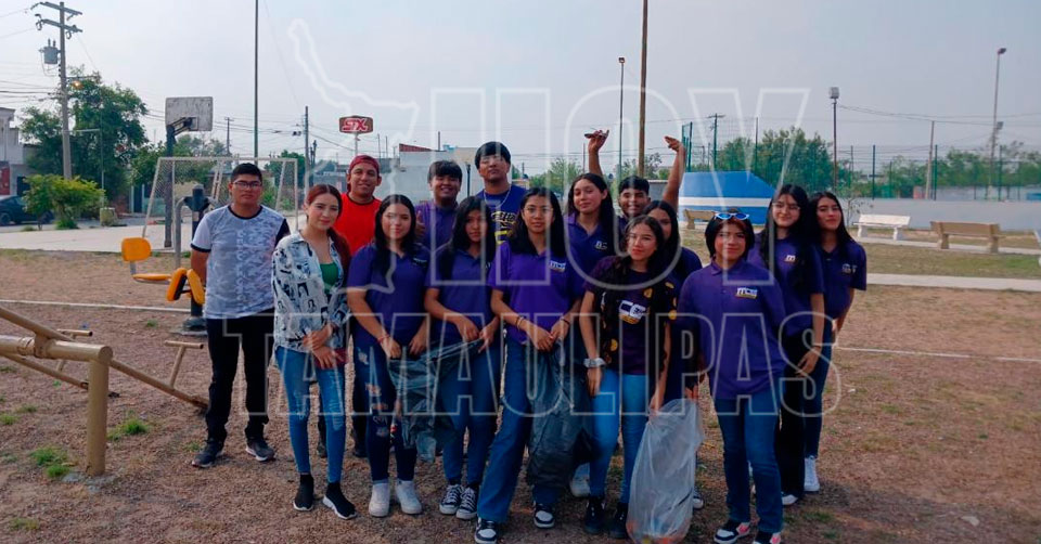 Reynosa, Tamaulipas. - En conmemoración del Día Mundial del Medio Ambiente, estudiantes del Instituto Técnico en Ciencias Computacionales (ITCC) en conjunto personal del Instituto Tamaulipeco de la Juventud (ITJUVE), llevaron a cabo una jornada de limpieza en plazas públicas de la colonia Campestre.