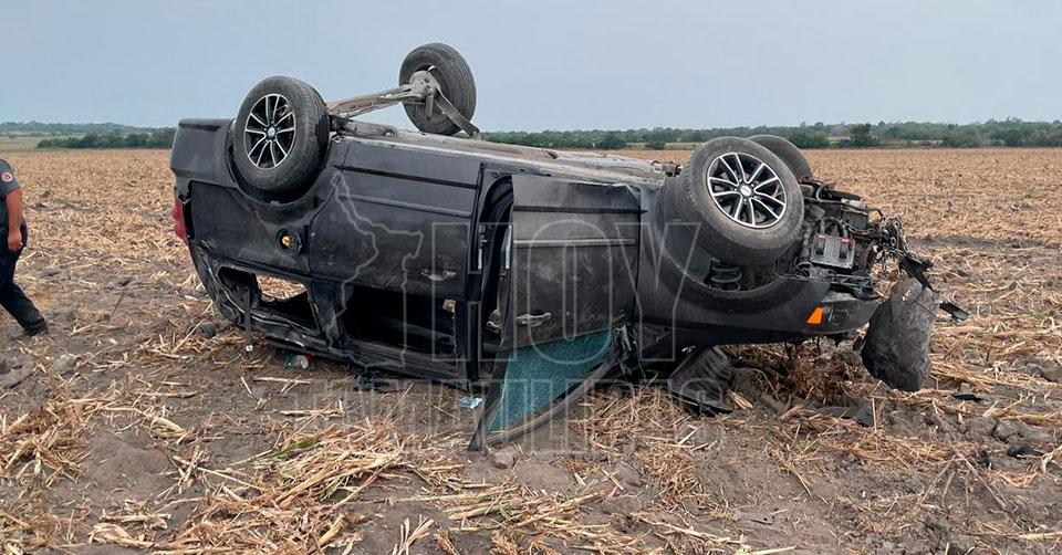 Ahí constataron que no había personas lesionadas solo dos vehículos abandonados, tratándose de una Ford Lobo cuatro puertas color guindo modelo 2004 que era la que transportaba una Dodge Caravan modelo 2017 placas mexicanas XHE-430-C, que también quedó a un costado en una parcela.