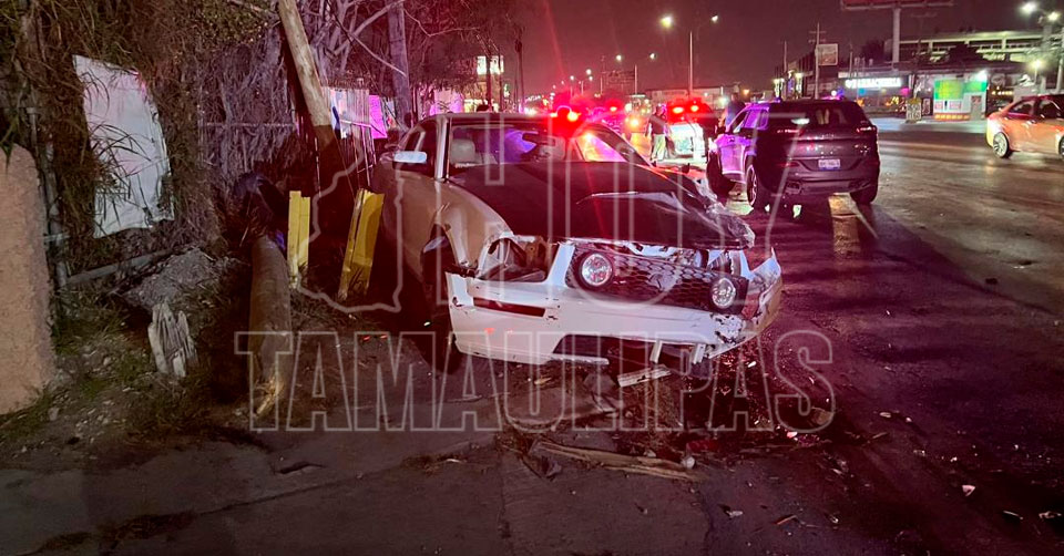 Tras la colisión el Mustang se quedó sin control y se proyectó con un poste, quedando sobre una banqueta y convertido en chatarra.
