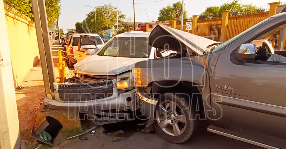 Nuevo Laredo, Tamaulipas. - Un aparatoso accidente vial registrado en un crucero de la colonia Guerrero en Nuevo Laredo, dejó como saldo cuantiosos daños materiales, luego de que un joven conductor no respetó la luz roja de un semáforo.
