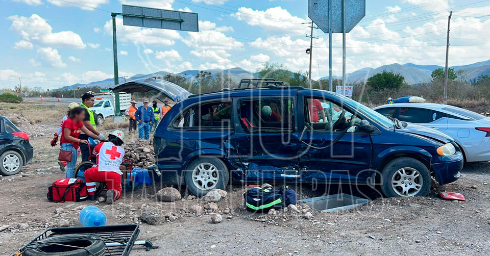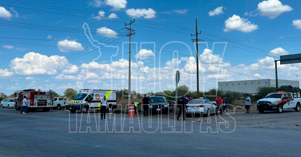 Ciudad Victoria, Tamaulipas. - Al menos siete personas lesionadas, entre ellas dos menores de edad y un trabajador que fue alcanzado por una de las unidades sin control, fue el saldo preliminar que dejó un fuerte choque en el entronque de la carretera Rumbo Nuevo y vieja a El Mante.