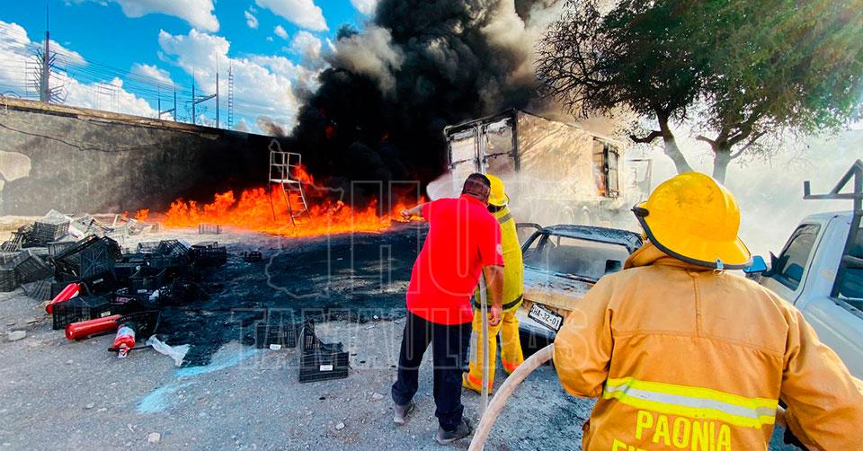 Sin embargo, las llamas alcanzaron un camión que se encontraba en reparación y cientos de cajas de plástico.