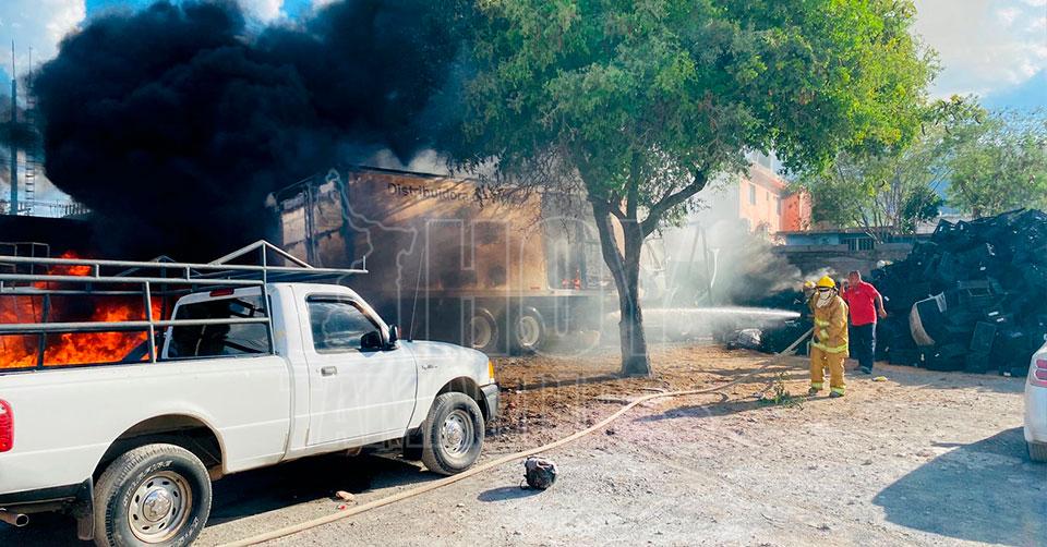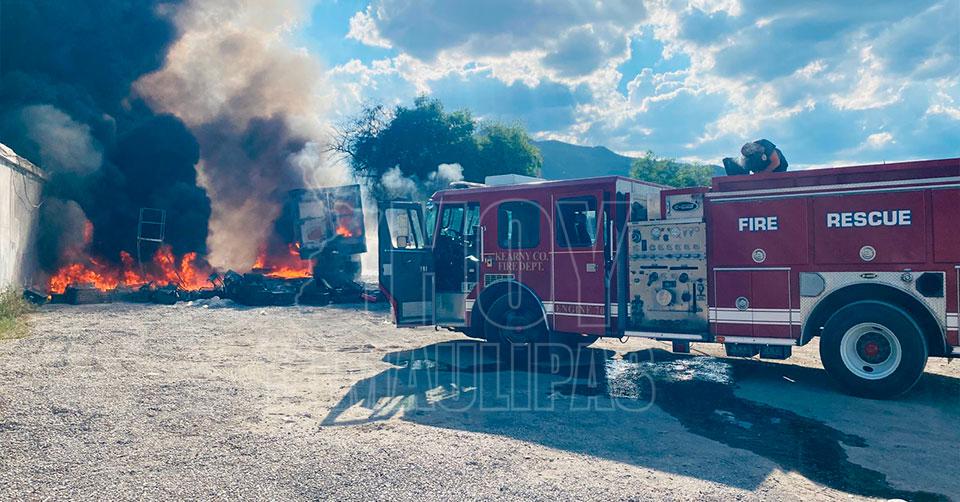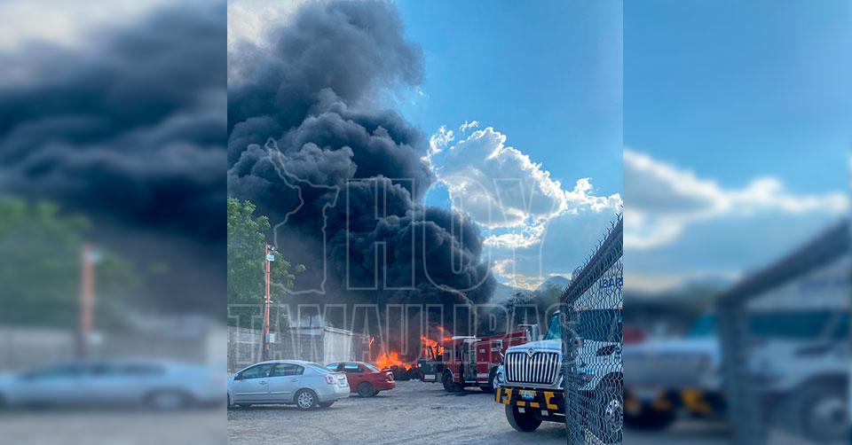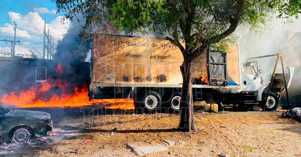 Ciudad Victoria, Tamaulipas. - Una fuerte movilización de elementos de Bomberos y Protección Civil de Tamaulipas, provocó el incendio en un estacionamiento de una empresa distribuidora de víveres en Ciudad Victoria.