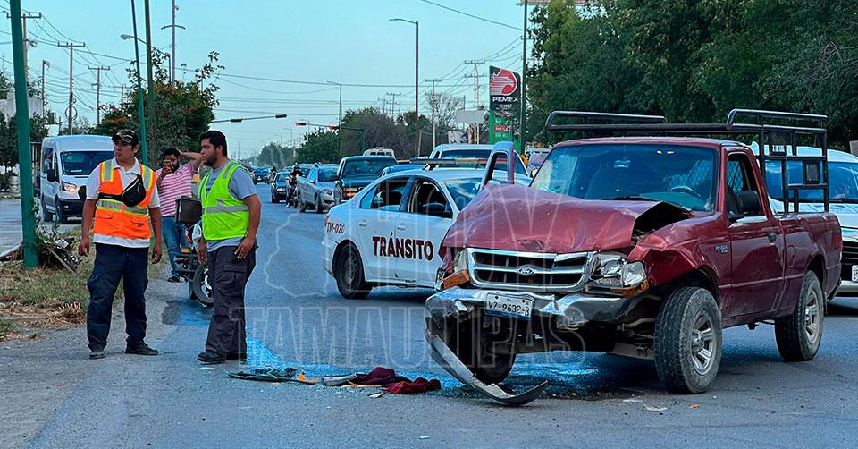 Ciudad Victoria, Tamaulipas. – Una mujer adulta y una menor resultaron lesionadas esta tarde al registrarse un fuerte percance vial en la Avenida de la Unidad y entrada al Fraccionamiento Las Palomas en Ciudad Victoria.