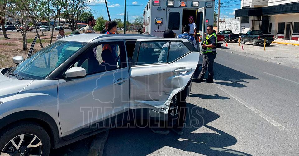 Ciudad Victoria, Tamaulipas. - Tres personas lesionadas entre ellas un estudiante, además de cuantiosos daños materiales, fue el saldo de un aparatoso choque ocasionado por la conductora de una camioneta en el Bulevar Fidel Velázquez y calle Matamoros.