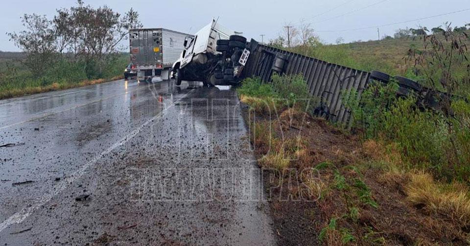 Esta pesada unidad era guiada de sur a norte proveniente de Guanajuato con destino a la ciudad de Reynosa y era conducido por Víctor ‘C’, que nada pudo hacer por evitar el encontronazo y volcar a un costado de la cinta asfáltica.