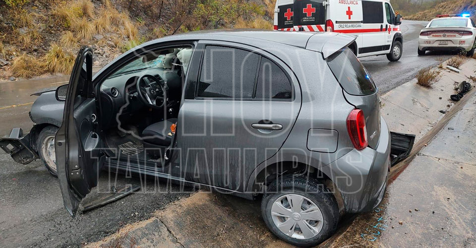 Ciudad Victoria, Tamaulipas. – Una mujer embarazada resultó lesionada después de estrellar el vehículo que manejaba contra el talud de la sierra, en el kilómetro 16 de la carretera Rumbo Nuevo.