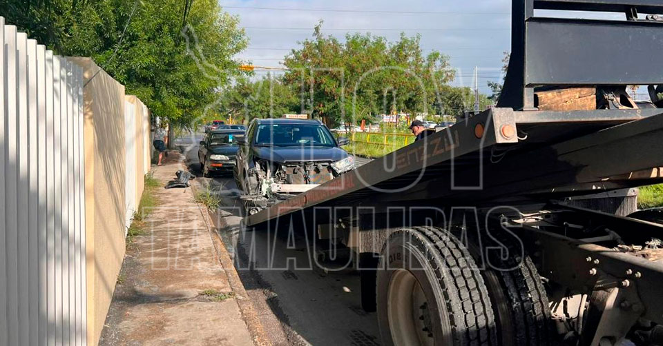 Reynosa, Tamaulipas. – Un accidente vial registrado esta mañana dejó cuantiosos daños materiales en la Avenida Miguel Alemán con Bulevar Inglaterra de la colonia La Cañada.
