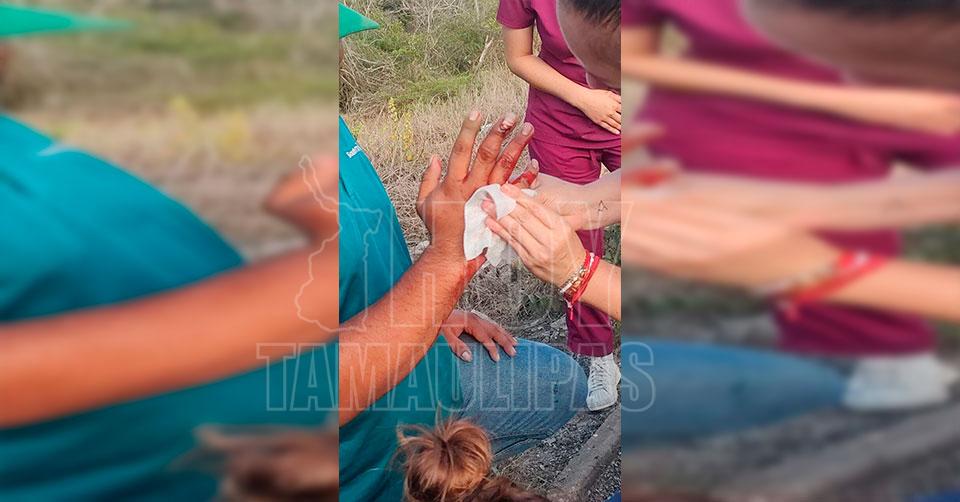 Altamira, Tamaulipas. - Un elemento de Bomberos del municipio de Altamira fue mordido en una mano por feroz cocodrilo que deambulaba por el Corredor Urbano "Luis Donaldo Colosio", y a quien presuntamente algunas personas hicieron enojar lanzándole piedras para que se quitara del camino.