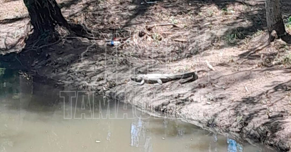 Tampico, Tamaulipas. – Una tremenda sorpresa se llevaron personas que caminaban por las inmediaciones de la zona militar de Tancol en Tampico, al encontrarse fuera de su hábitat a un cocodrilo de regular tamaño.