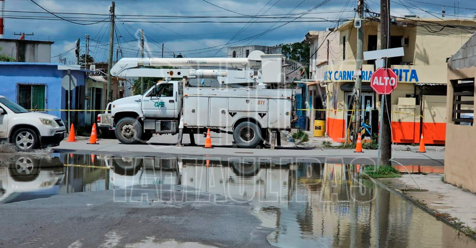 Hasta esta hora de la tarde, el personal de la CFE seguía trabajando en la rehabilitación de todos los postes que se vieron dañados, además de restablecer el servicio eléctrico, trabajando más de cuatro cuadrillas en el lugar.