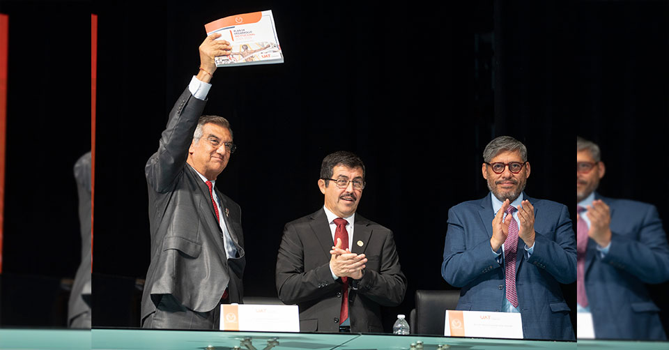 Más adelante, el rector señaló que en esta nueva etapa de transformación existe el compromiso de lograr el gran despegue de la UAT, y que este planteamiento “es un testimonio de nuestra responsabilidad social y de nuestro deseo de actuar en consonancia con las necesidades y realidades de nuestro tiempo”.