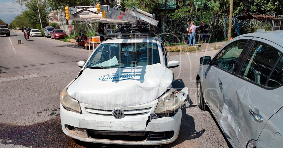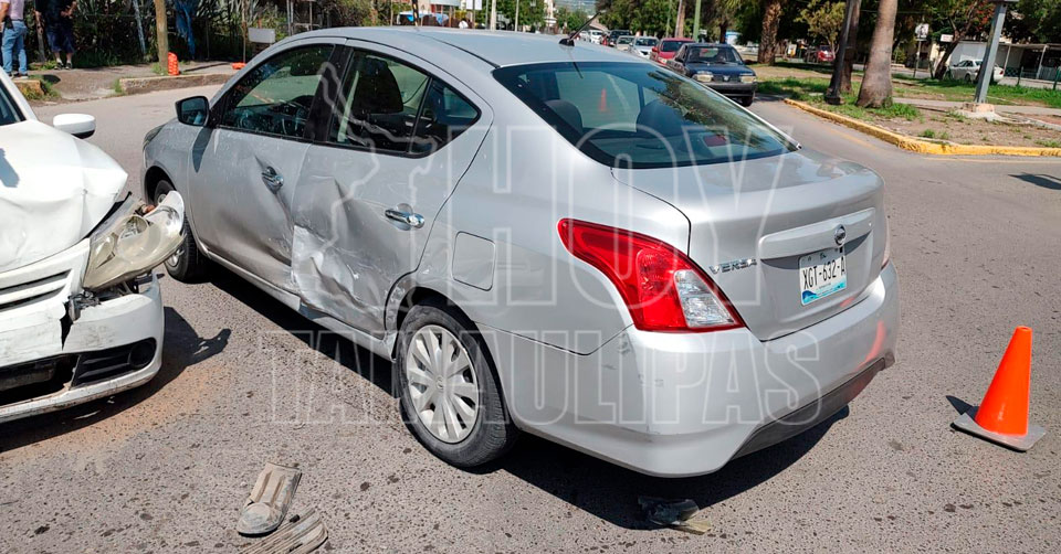 Ciudad Victoria, Tamaulipas. - Un conductor y empleado de Telmex ocasionó un aparatoso accidente vial al impactar el vehículo que manejaba contra otro, en el 21 López Mateos.