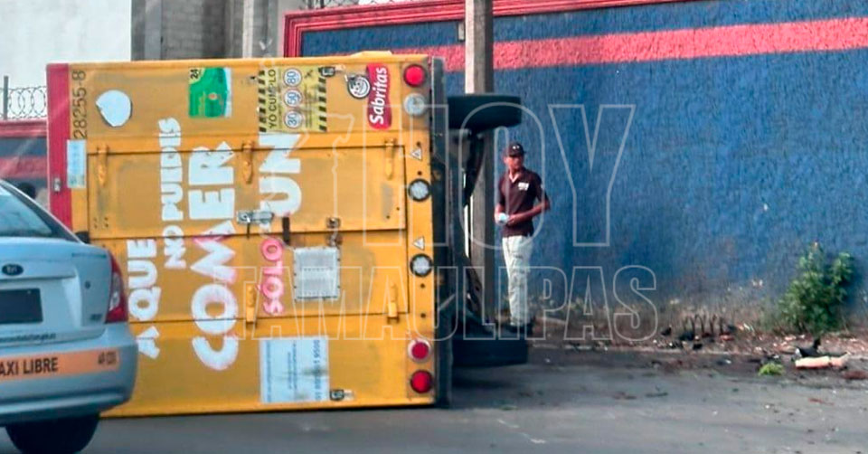 Camioneta de Sabritas volcó esta mañana en Altamira
