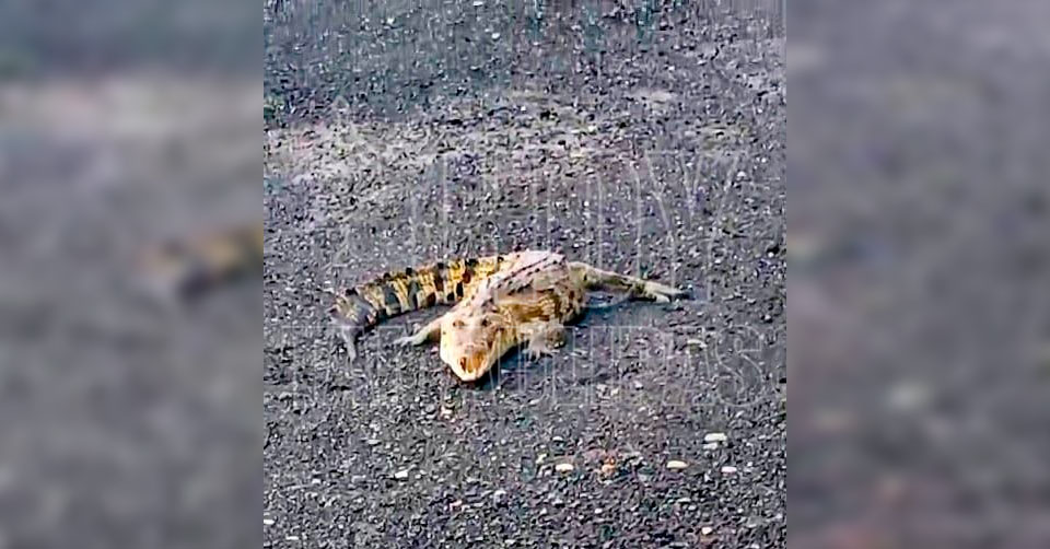 Sorprende cocodrilo a automovilistas en carretera de Villa de Casas