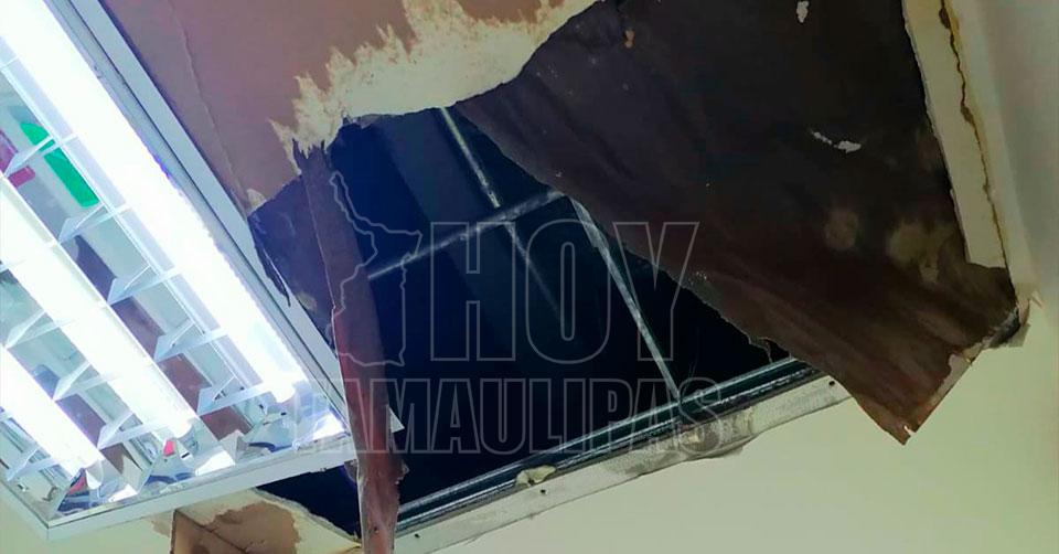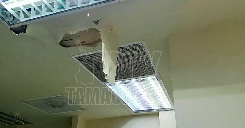Techo de Capasits Tampico a punto de colapsar por fuertes lluvias