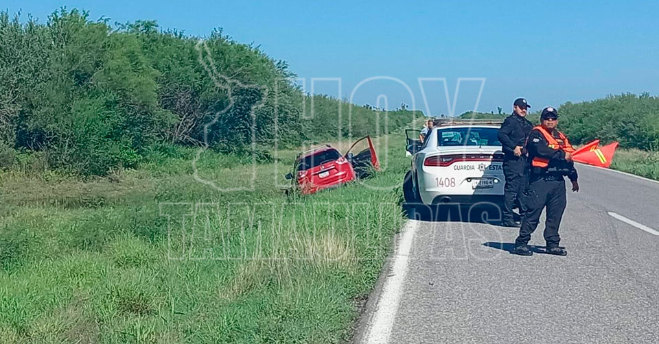 Padilla, Tamaulipas. - Tras derrapar fuera de la cinta asfáltica a consecuencia de una afectación en un neumático delantero, un conductor fue asistido por el personal de la Guardia Estatal de Apoyo Carretero comisionado a la Estación Segura Vicente Norte.