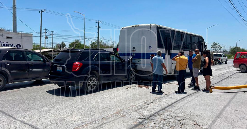 Reynosa, Tamaulipas. - La falta de precaución al volante provocó que la conductora de una camioneta se estrellara en la parte trasera de un microbús de la ruta Balcones.