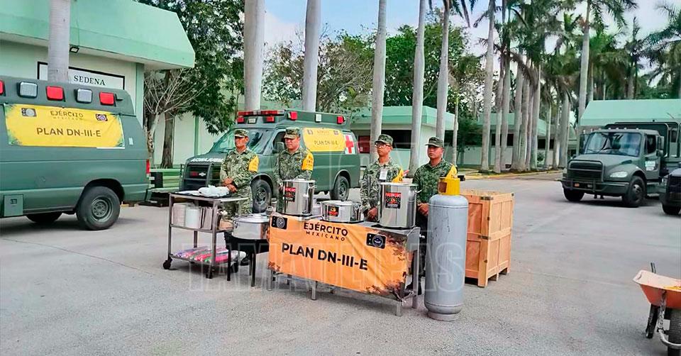 De hecho, en la explanada del Campo Militar de Tancol se presentó a parte del personal operativo y de tarea que estará desplegado para instalar cocinas móviles, unidades de rescate, ambulancias, junto con el apoyo de la Guardia Nacional, Guardia Estatal y los respectivos ayuntamientos de la región que se comenta.