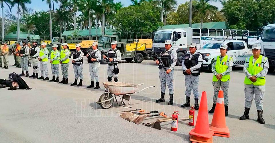 Tras activar el Centro Coordinador de Operaciones y el Plan DN-III-E Sur, acompañado de los responsables de Protección Civil de Tampico, Madero, Altamira, González y Aldama, así como del Gobierno del Estado y del Gobierno Federal, el jefe militar explicó que por parte de la Secretaría de la Defensa Nacional se cuenta con una fuerza de 400 elementos castrenses emplazados.