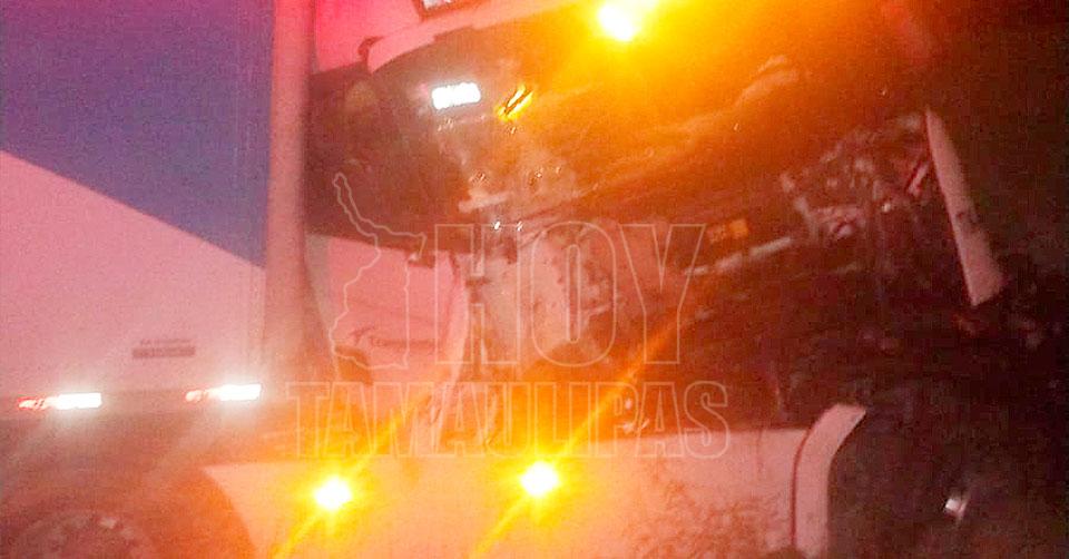 De acuerdo a los reportes, el conductor del Volvo se quedó dormido al volante e impactó por alcance al International en la caja y luego se salió del camino.