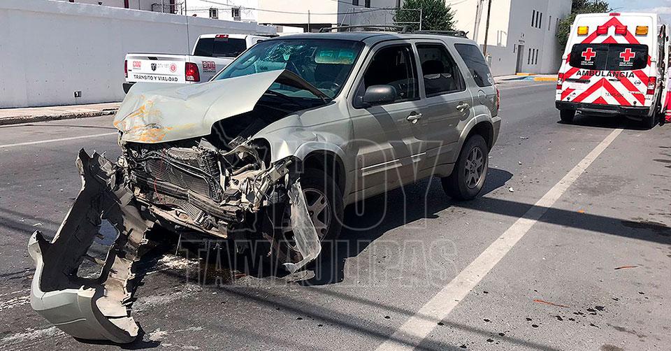 Nuevo Laredo, Tamaulipas.— Una mujer resultó lesionada al chocar su camioneta Ford Escape contra una ambulancia del Municipio de Anáhuac, Nuevo León, que trasladaba a un paciente al Hospital General de Nuevo Laredo.